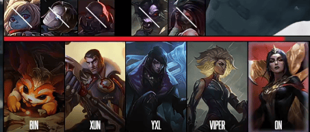 BLG采取:Bin纳尔;Xun杰斯;Yxl妖姬;Viper厄斐琉斯;ON芮尔