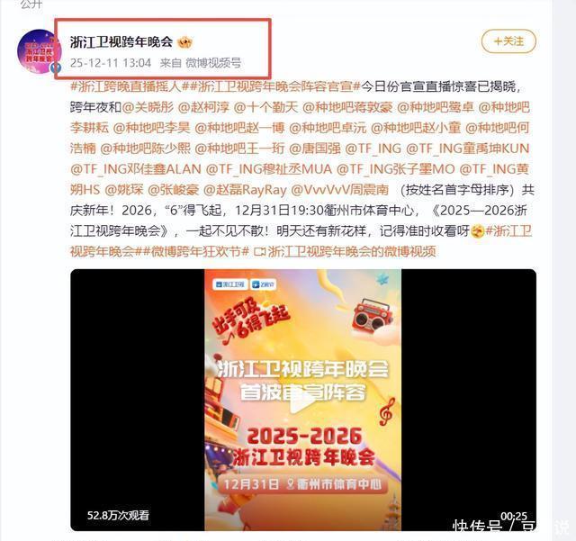 浙江卫视2025-12-11《#浙江跨晚直播摇东谈主##浙江卫视跨年晚会威望官宣#》