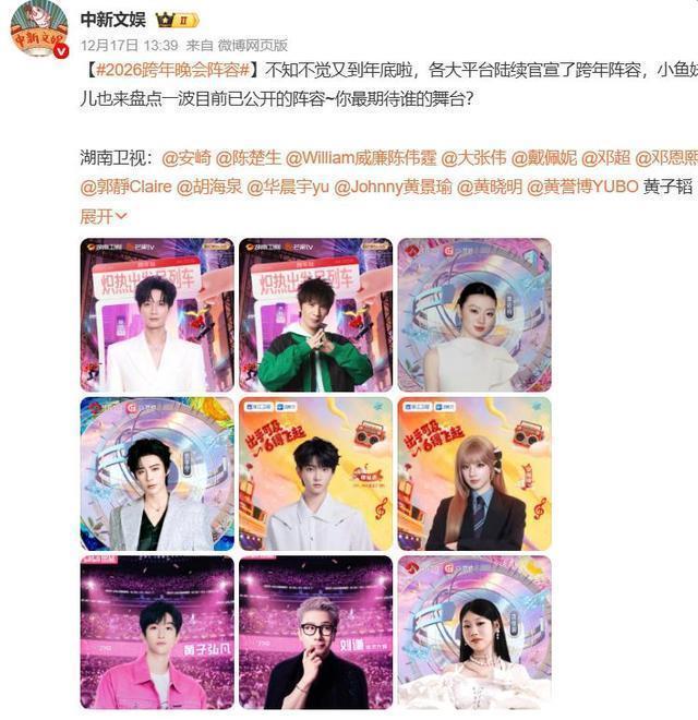 距离2025年为止,只剩下不到半个月的时期。 为了招待2026年的到来,各大卫视都悉心准备了跨年晚会。 看到嘉宾威望和节目单后,不少网友都惊叹:连茅厕都不敢上了。 早在12月初,湖南卫视就官宣了嘉宾威望,径直拉满了专家的期待值。 湖南卫视手脚跨年晚会的巅峰,创下了20年收视率最佳的收成。 此次晚会主题紧扣“燥热开赴”四字,荟萃年度最火艺东谈主,为不雅众打造视觉盛宴。 湖南卫视此次蚁集了多个限制的明星,应该