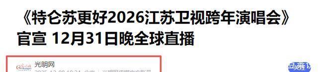 光明网2025-12-08《《特仑苏更好2026江苏卫视跨年演唱会》官宣12月31日晚全球直播》