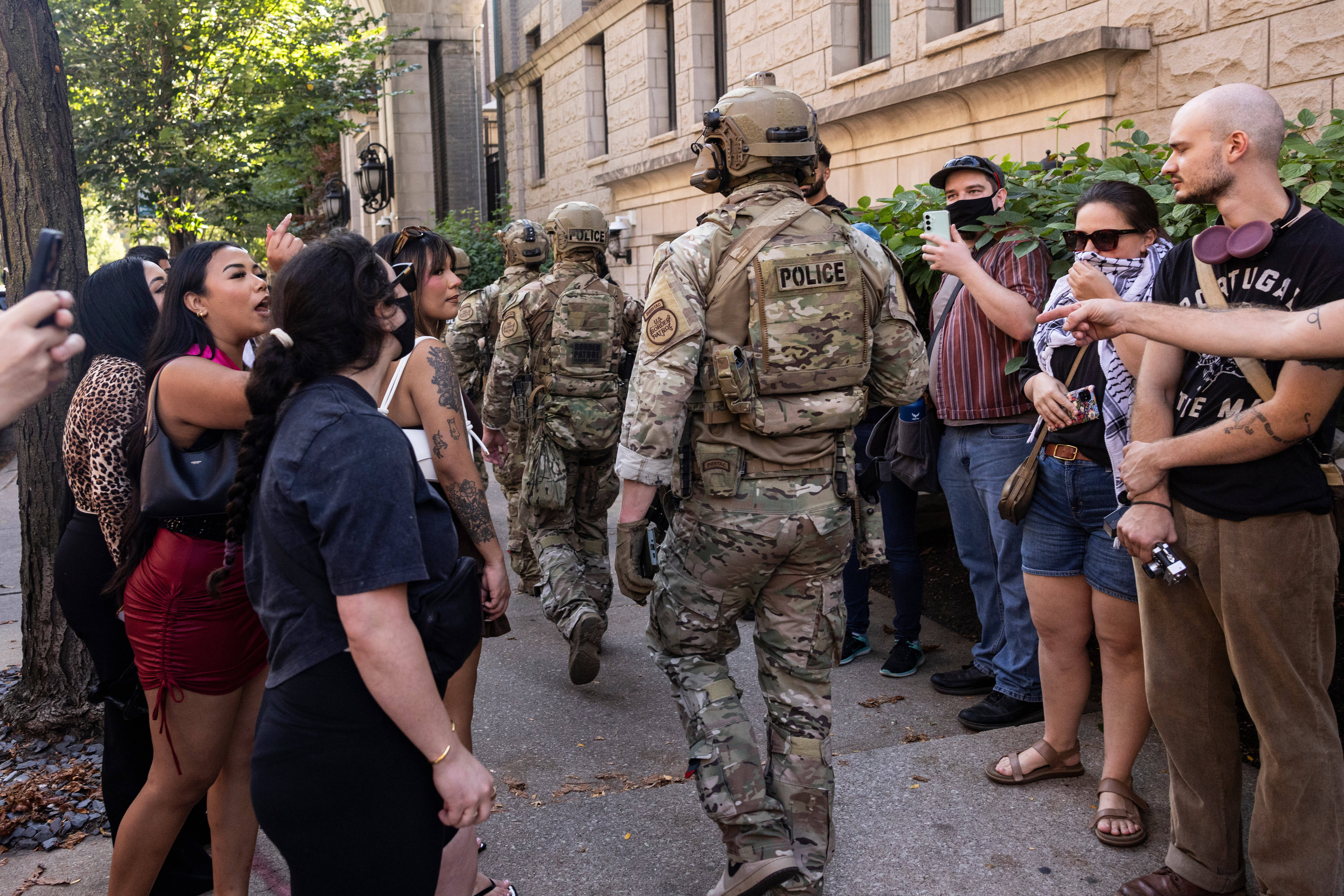 据好意思联社报说念,28日,数十名全副武装的联邦王法东说念主员在芝加哥市一些着名的旅游和购物区放哨,引诱不少购物者和在街边咖啡馆用餐的家庭能干,很多东说念主拿入手机摄像。