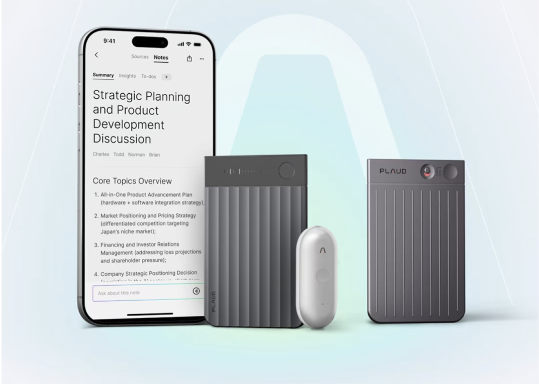 Plaud通过“硬件+订阅”模式惩处了这个问题。其初代产物Plaud Note,形态是一张不错磁吸在手机背后的超薄卡片,搭载ChatGPT等AI模子。硬件惩处灌音,而订阅做事则负责后续的AI智能转写与会议总结。